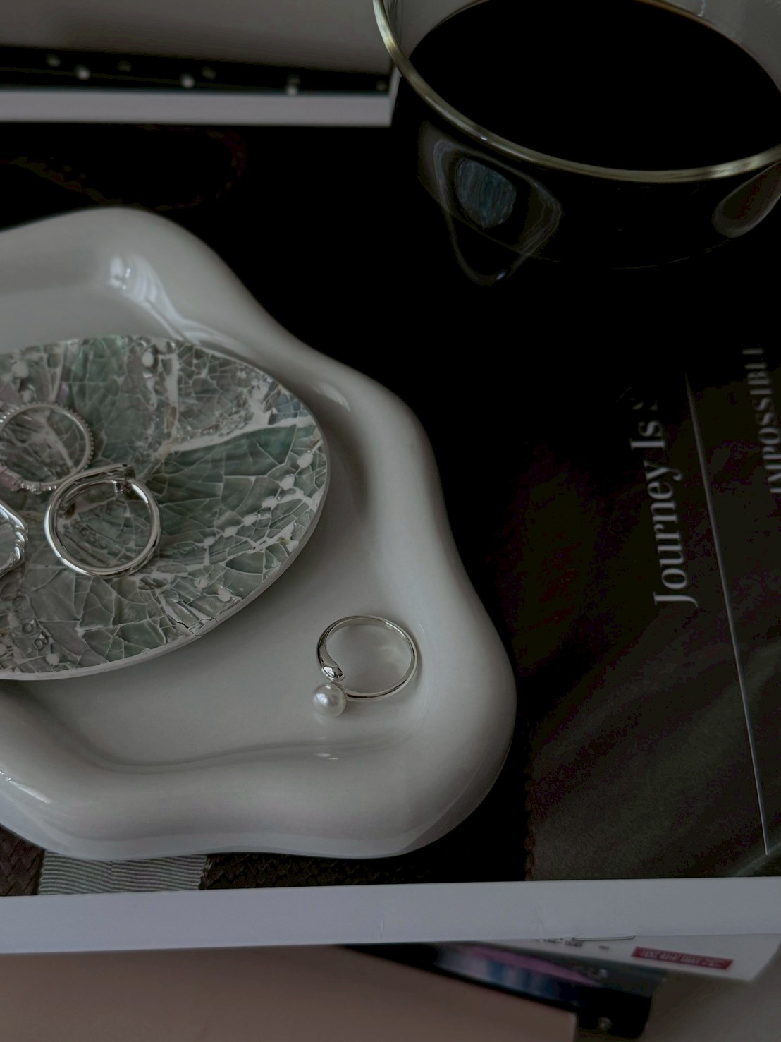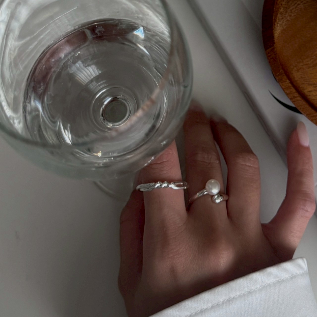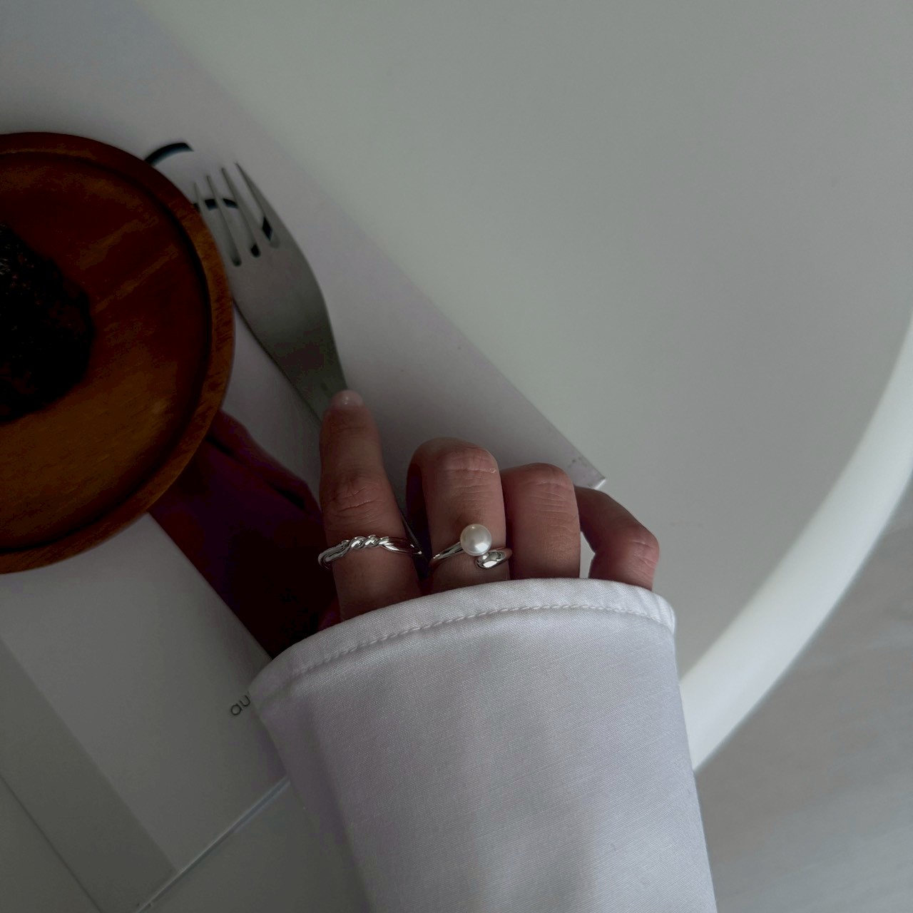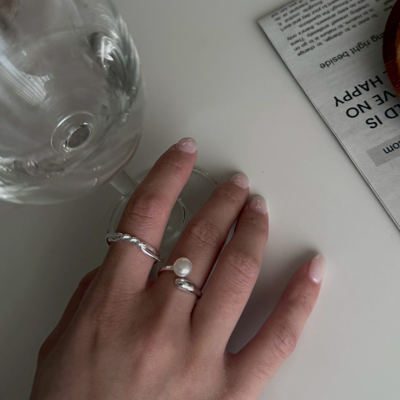 戒指保留簡約線條,讓珍珠成為主角。