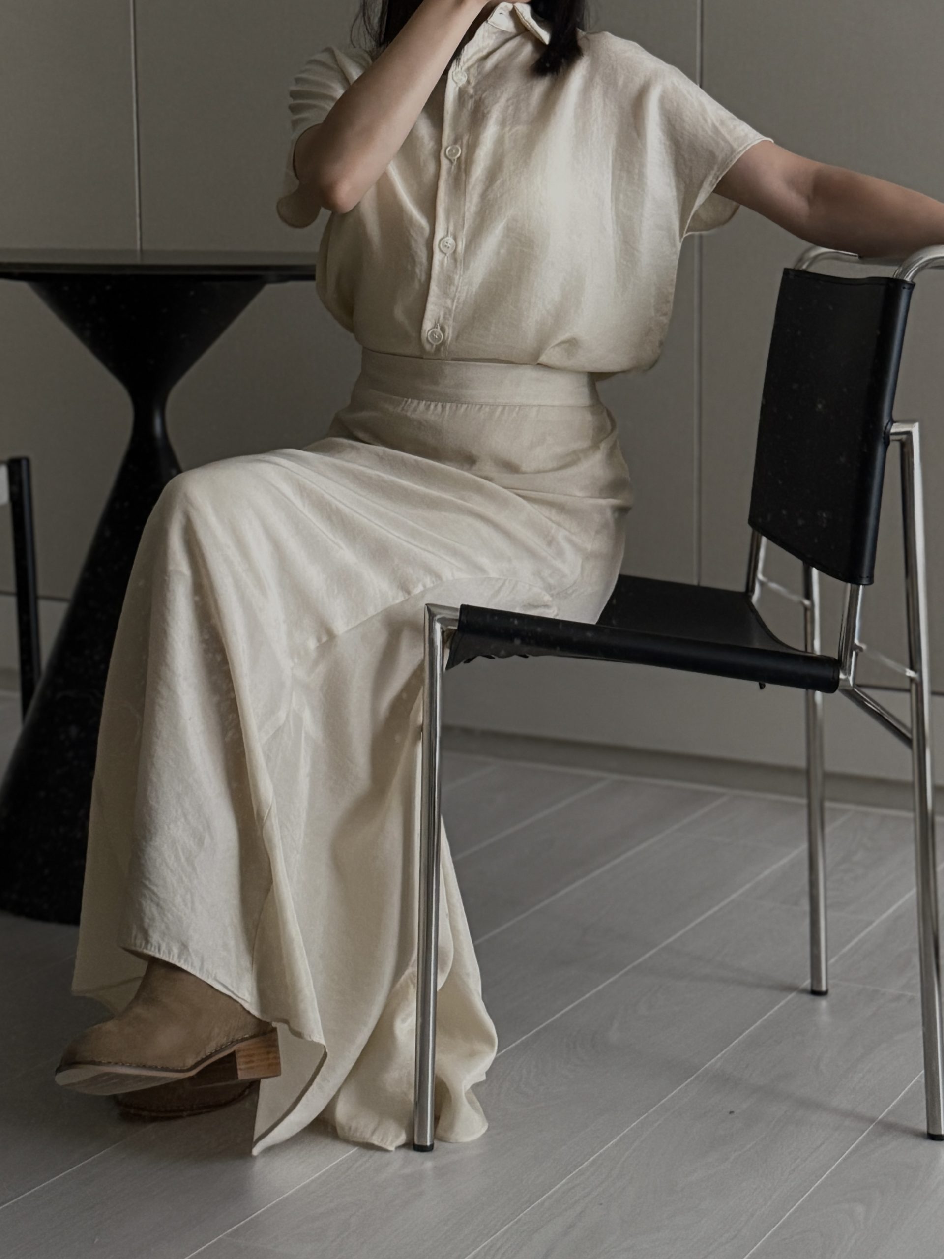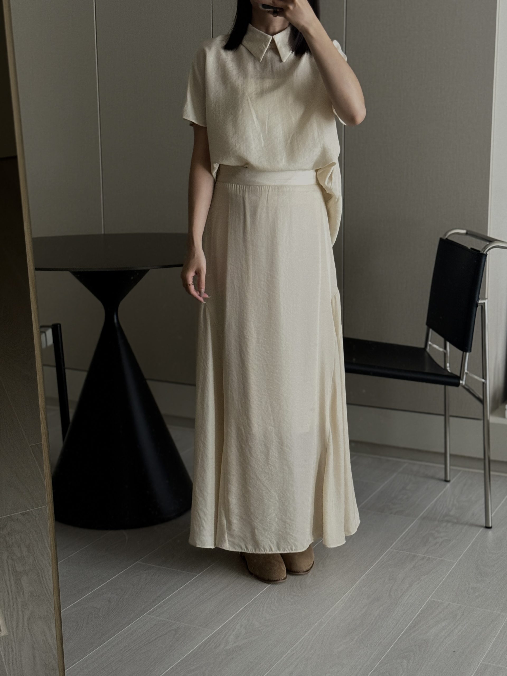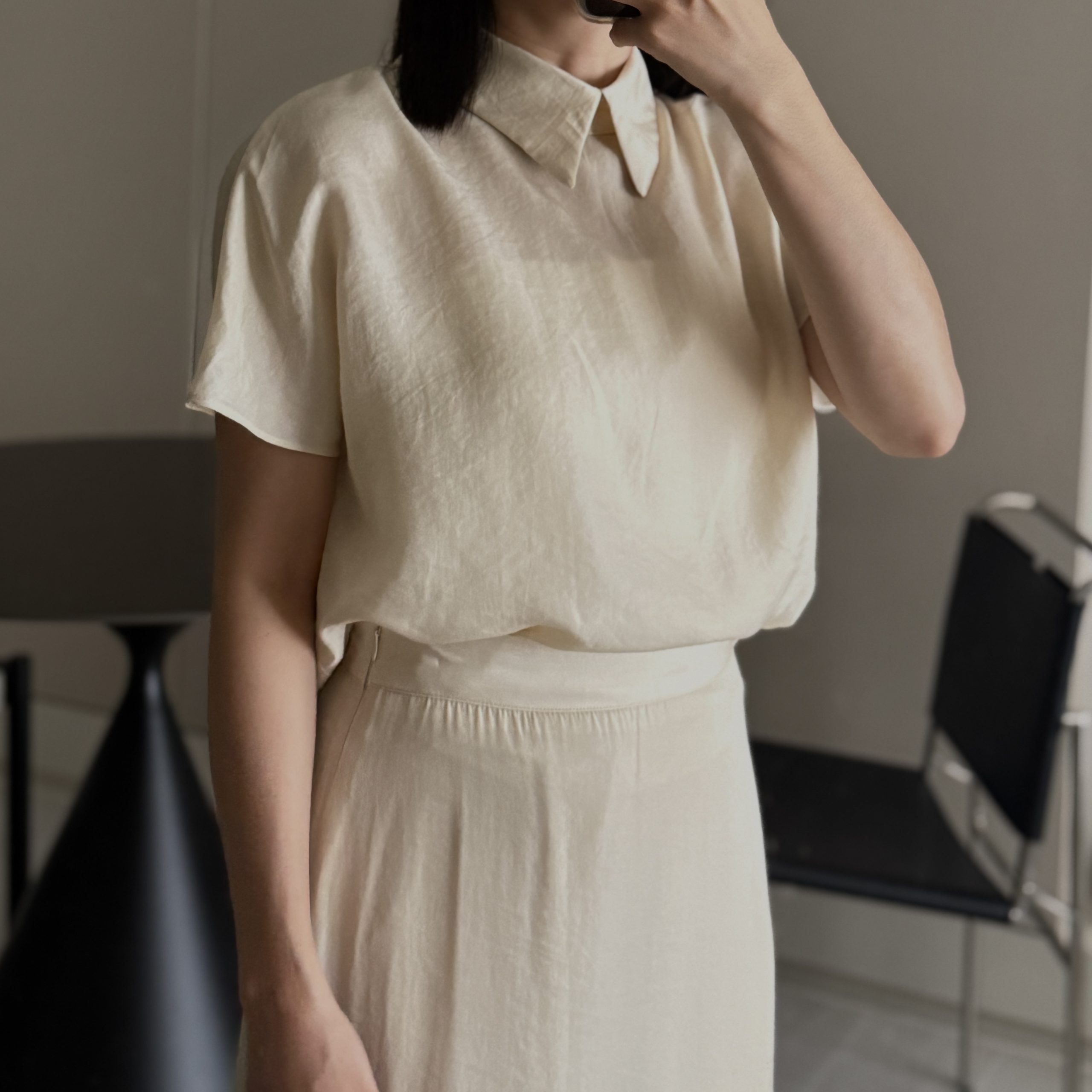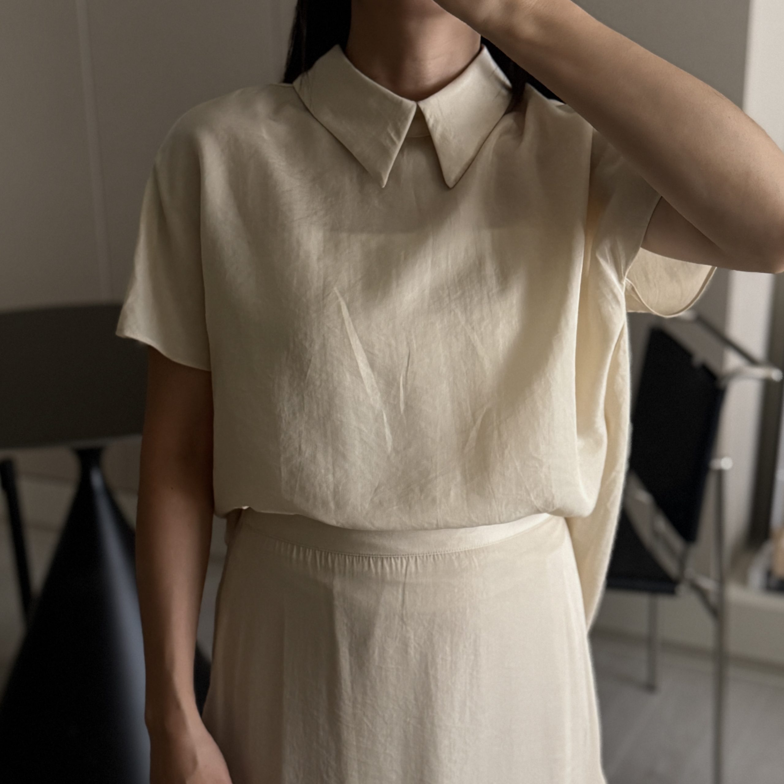 平量尺寸 : 胸寬 51.5 下擺寬 55.5 袖長 28 全長 59 (cm)