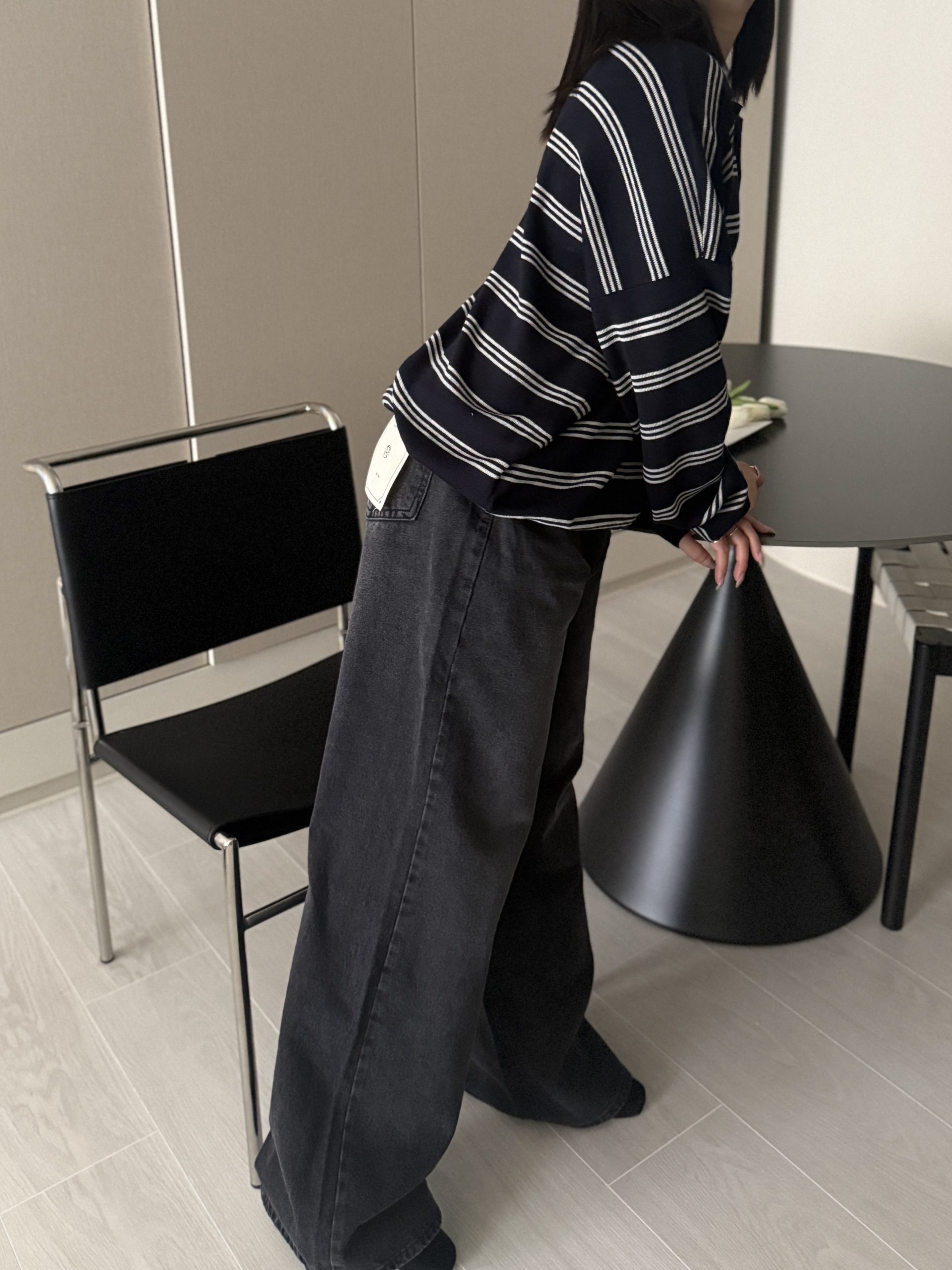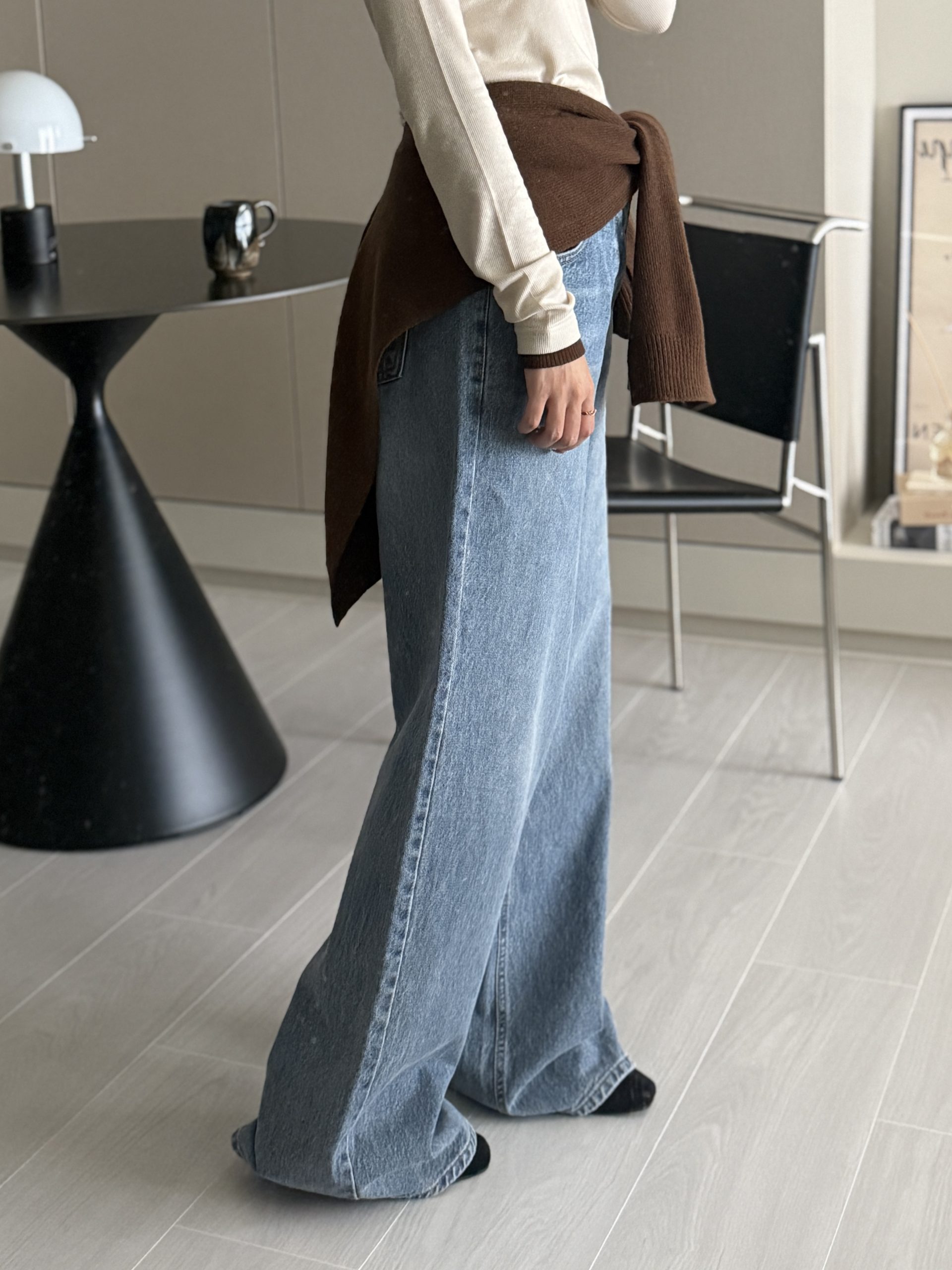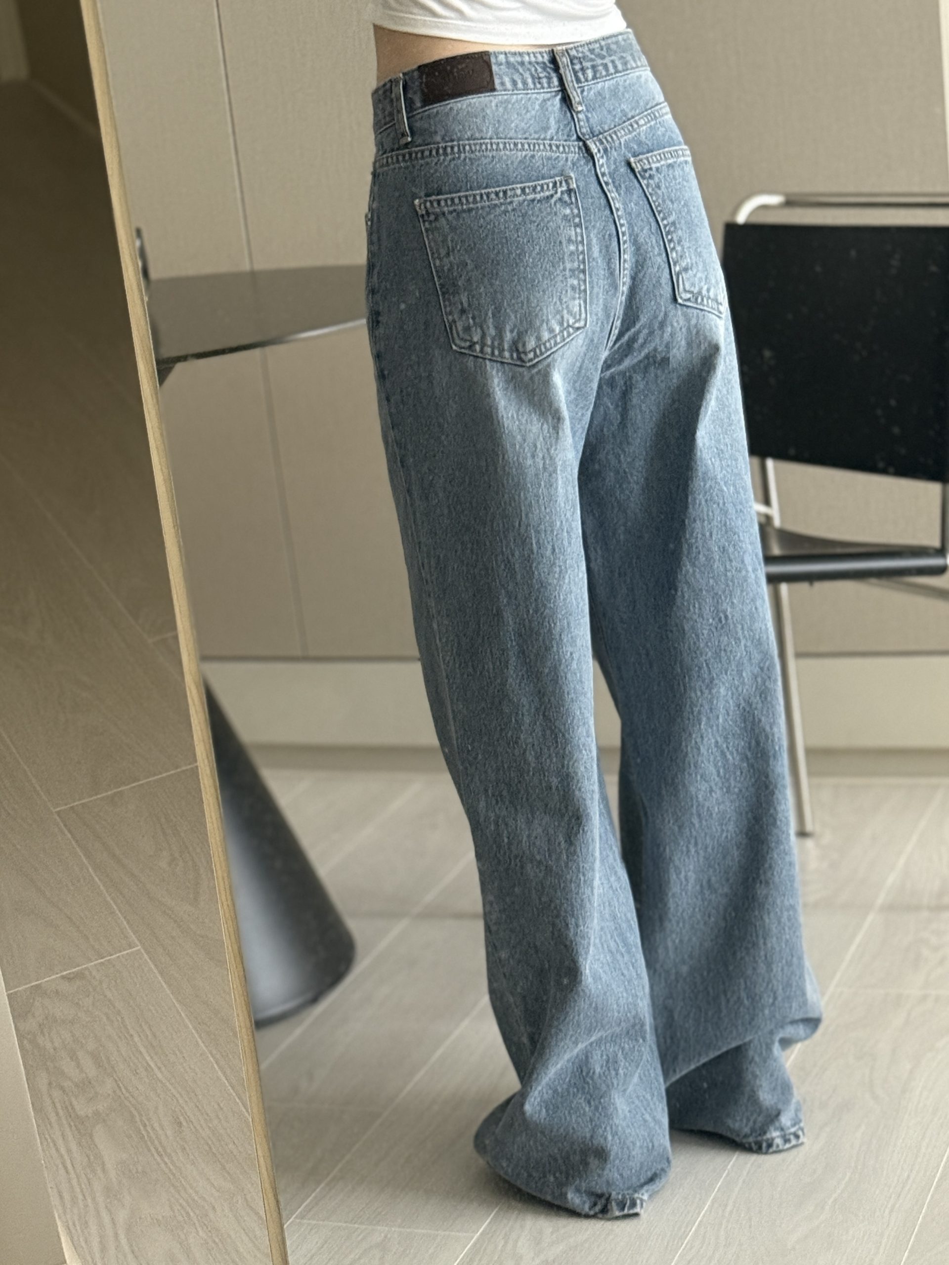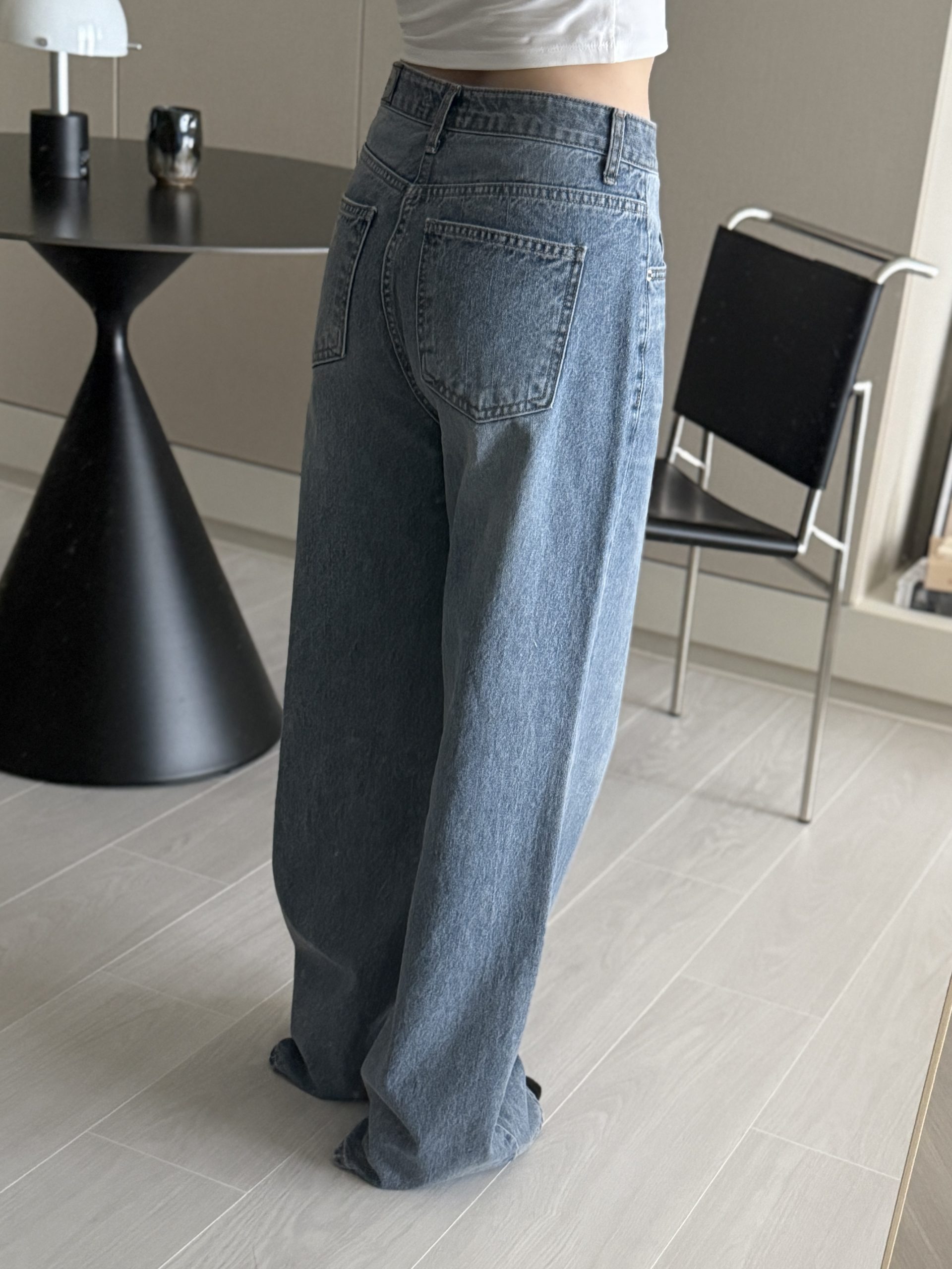 平量尺寸 S : 腰圍 34 臀圍 49 大腿圍 30 前褲檔 30.5 後褲檔 41.5 褲口寬 28.5 全長 106 (cm)