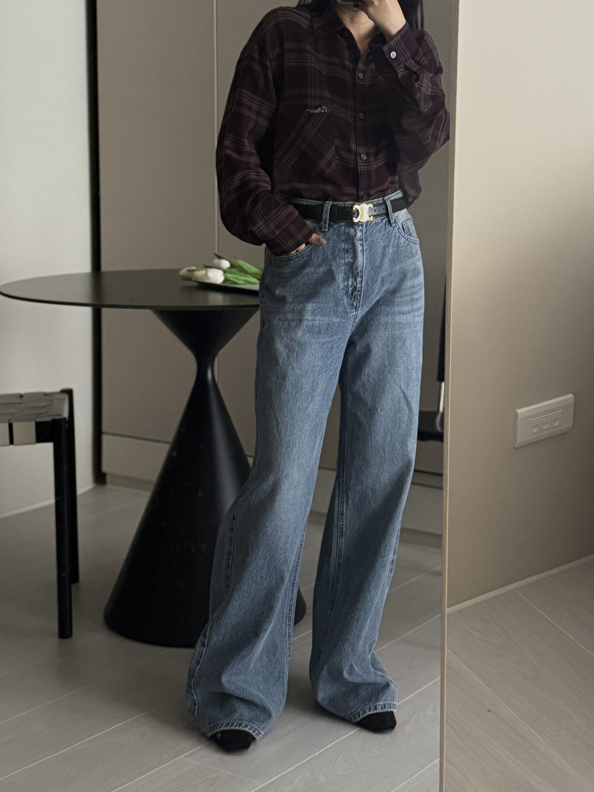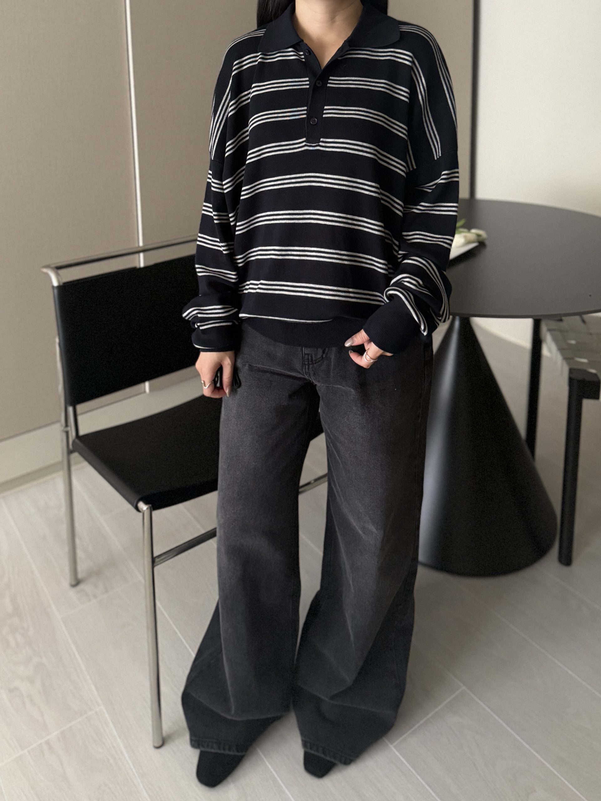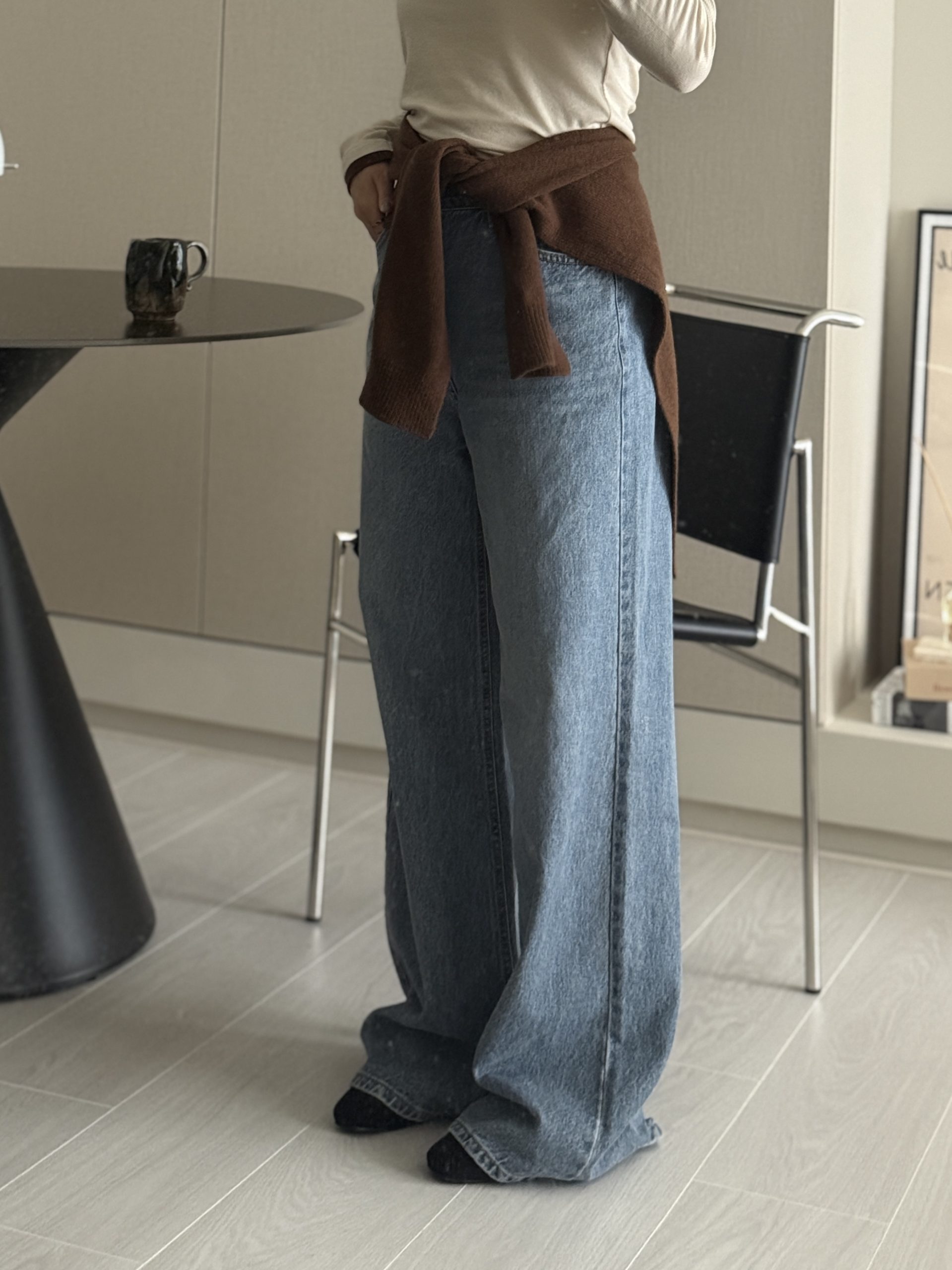 平量尺寸 S : 腰圍 34 臀圍 49 大腿圍 30 前褲檔 30.5 後褲檔 41.5 褲口寬 28.5 全長 106 (cm)