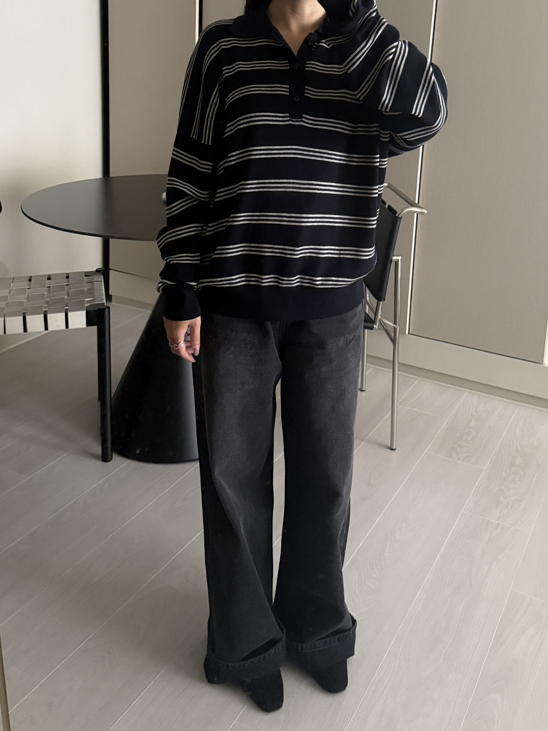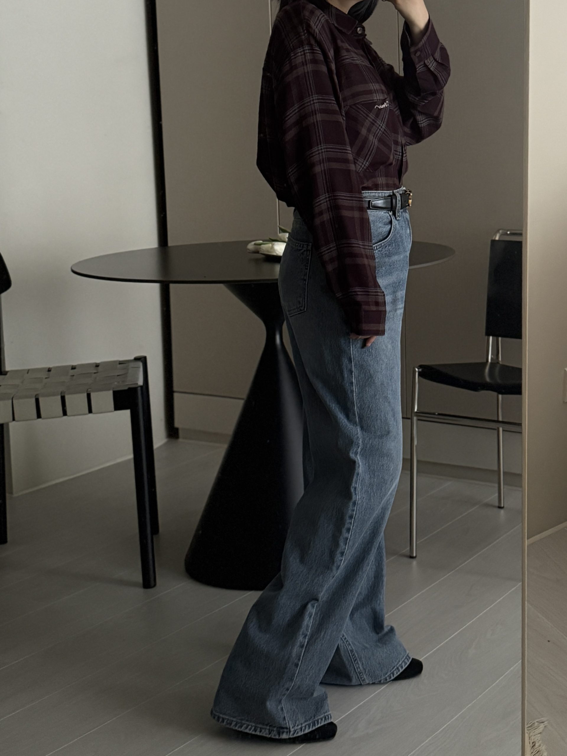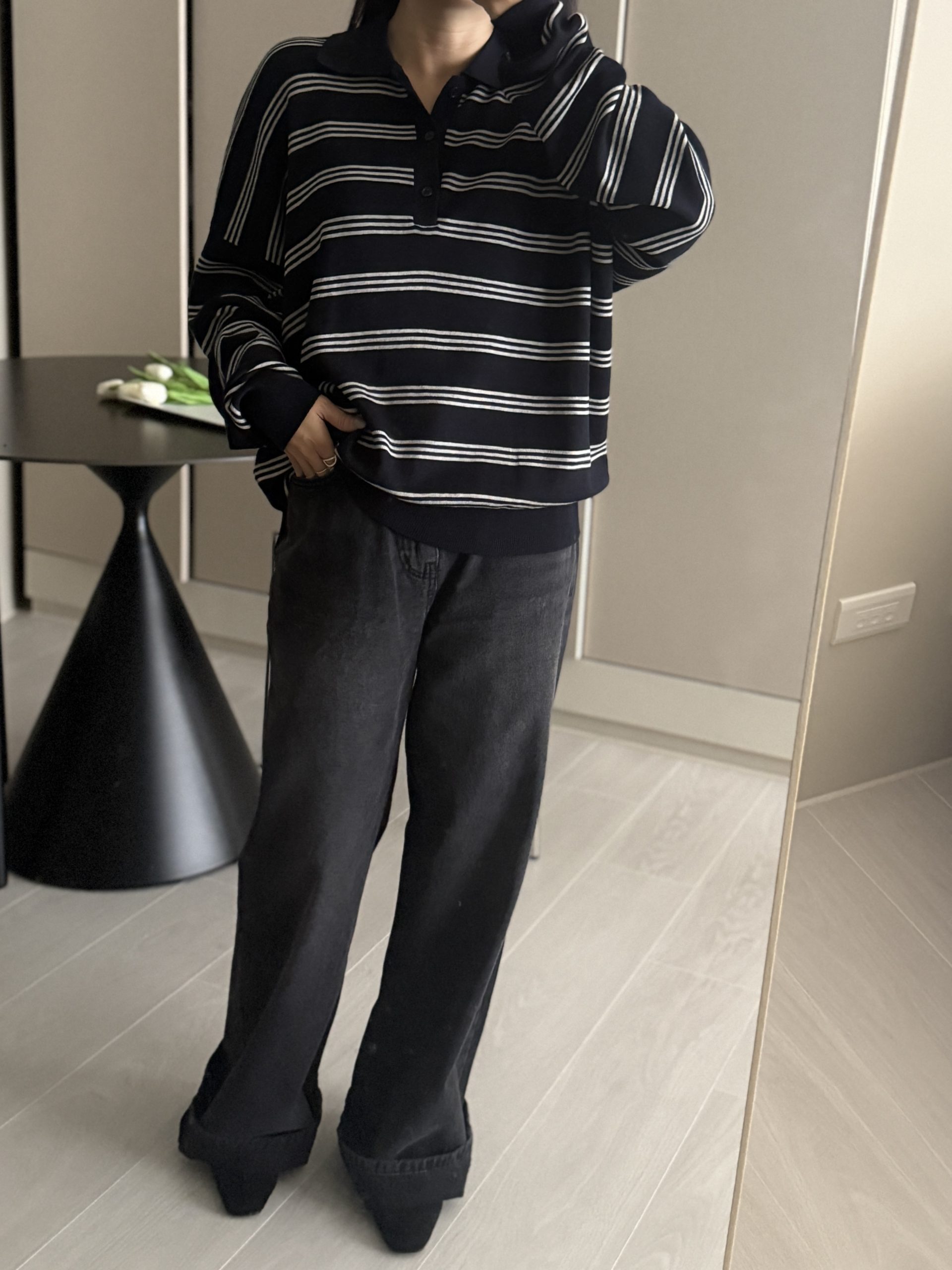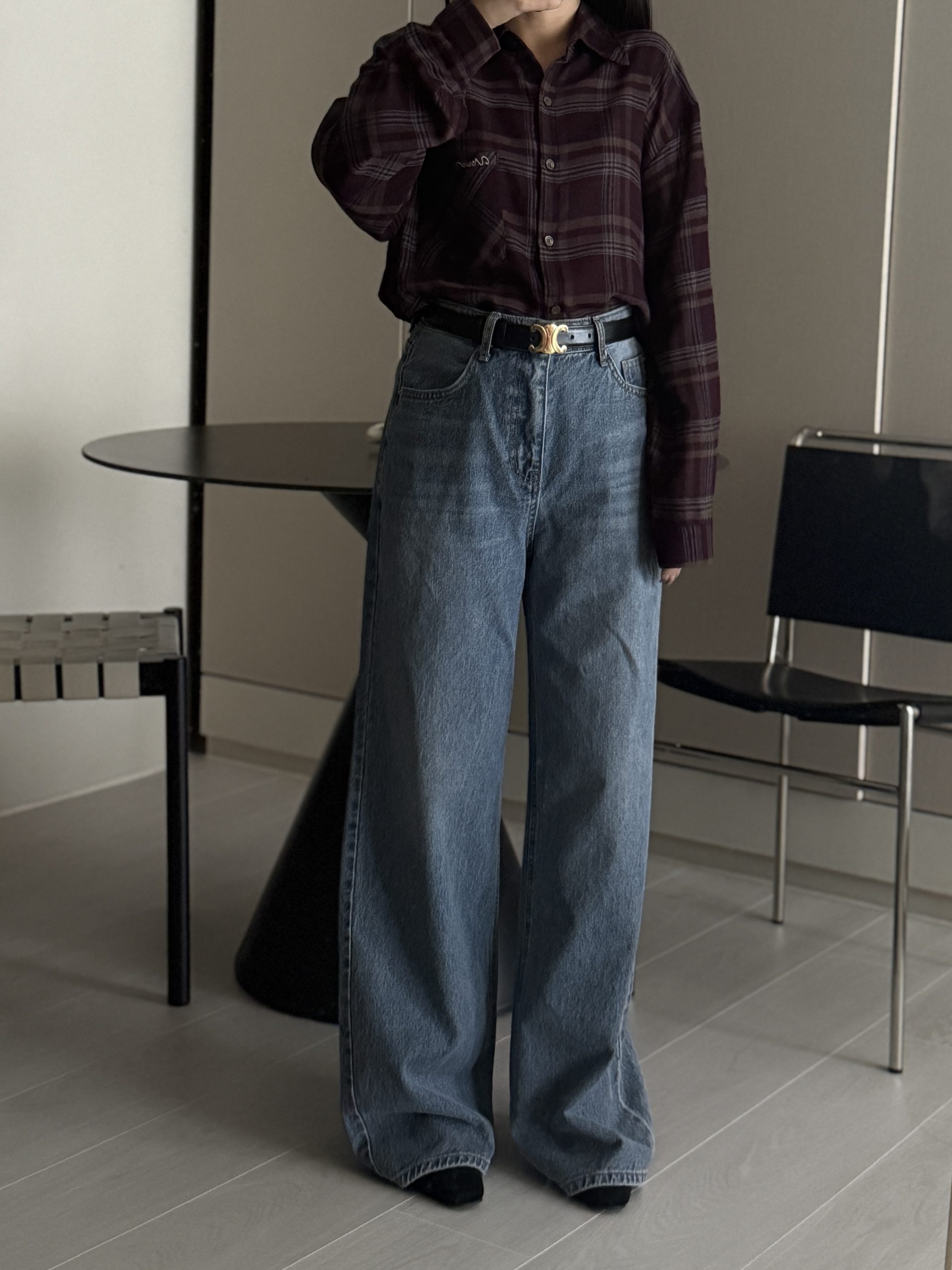 平量尺寸 S : 腰圍 34 臀圍 49 大腿圍 30 前褲檔 30.5 後褲檔 41.5 褲口寬 28.5 全長 106 (cm)