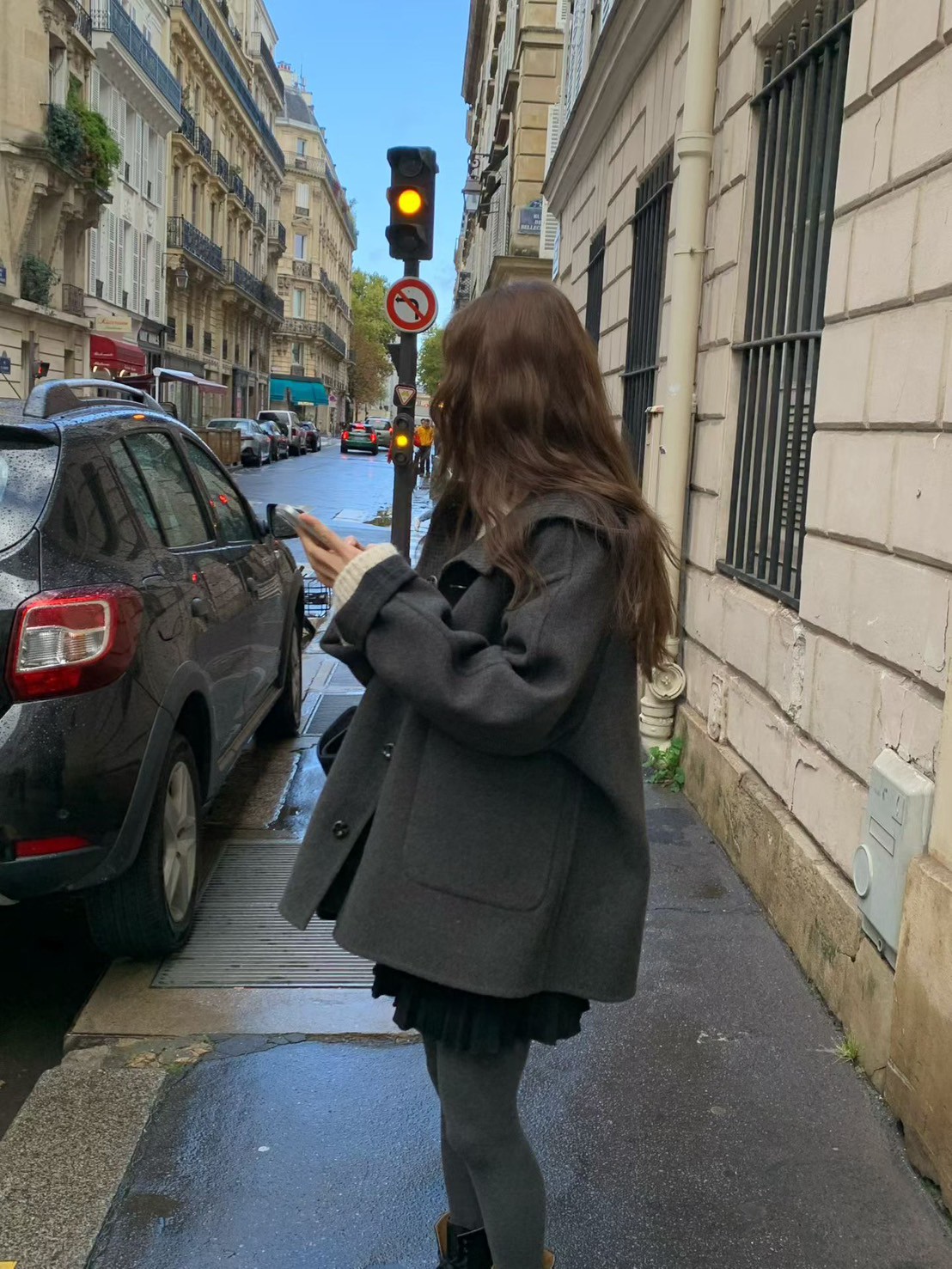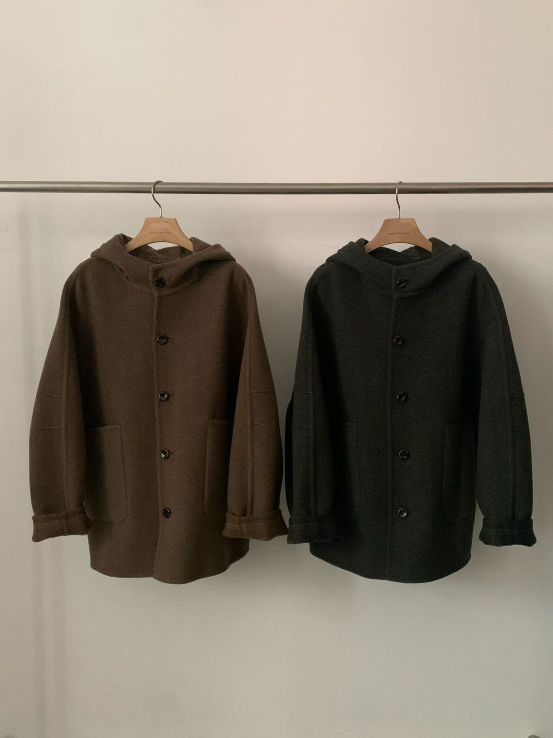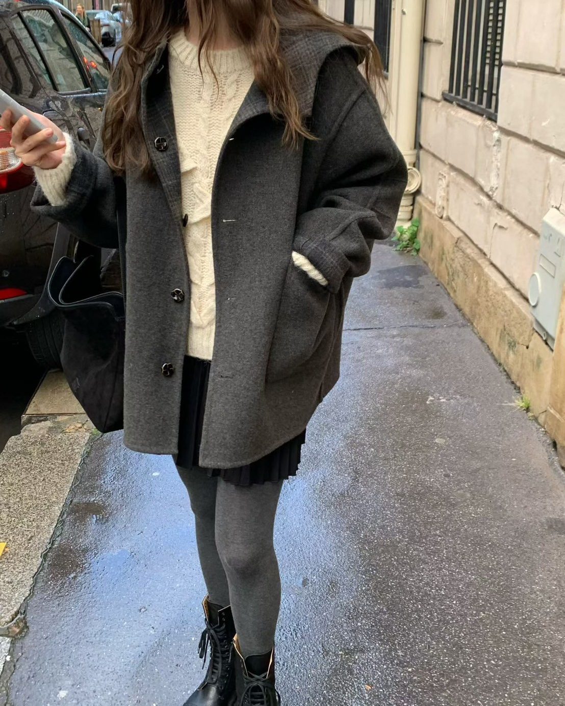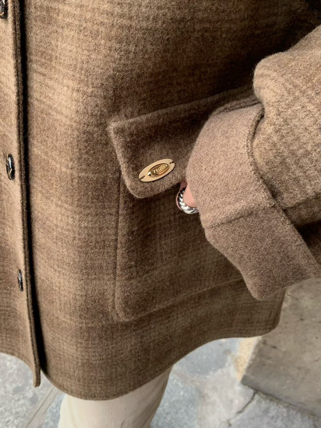高級法式格紋兩面穿羊毛連帽手工大衣